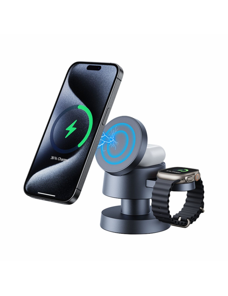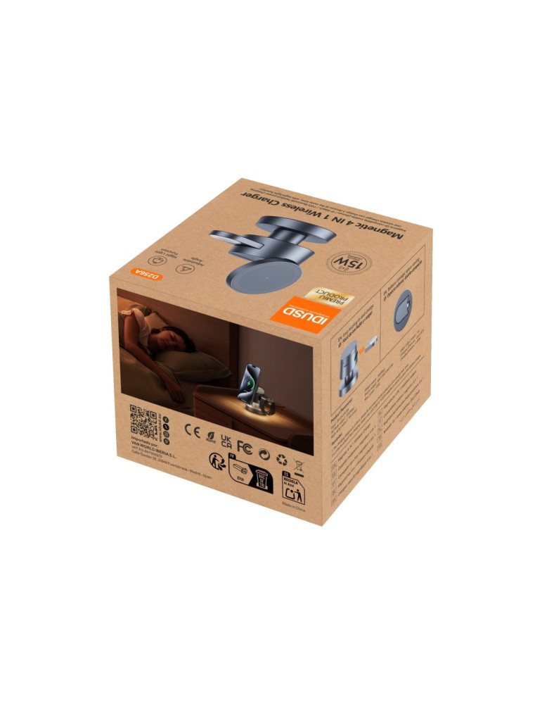 El cargador ECO 4 en 1 de 15W se te presenta como una estación de carga multifuncional. Carga tu smartphone, Apple Watch y Airpods contando con una lámpara nocturna integrada. Con su diseño de carga eficiente y elegante.