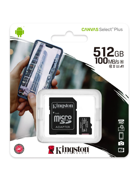 Los más vendidosTarjeta MicroSD Kingston CANVAS Select™ Plus 512GB 100MB/s Clase 10 + Adaptador