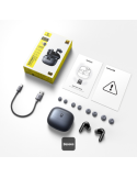 Auriculares Baseus BP1 Pro True Wireless en elegante color negro con Bluetooth 6.0, cancelación de ruido adaptativa (ANC), gran autonomía y controles táctiles para música y llamadas sin cables.