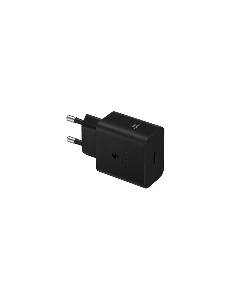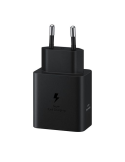 Cargador de pared Samsung 45 W USB‑C en color negro con carga rápida Power Delivery 3.0 y PPS — perfecto para cargar smartphones, tablets y dispositivos compatibles de forma segura y eficiente.